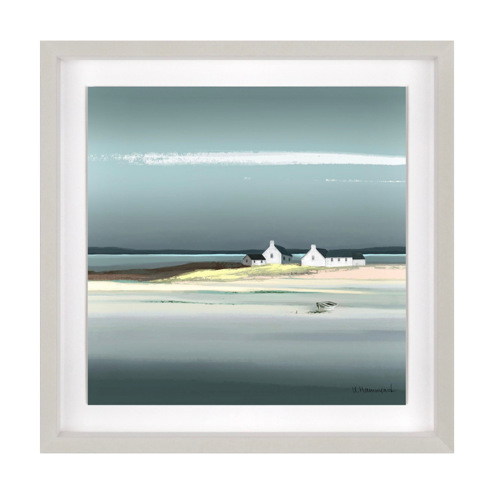 Immerse yourself in the tranquility of our serene sea view featuring white cottages on the shore, surrounded by calm seas. The white mount and pale grey frame add to the calming and peaceful aesthetic, making it the perfect addition to any space. Escape to a peaceful paradise with this beautiful picture.